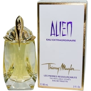 Design House: Thierry Mugler Scent Name: Alien Preciois Talismans is available in a 2 PC. GIFT SET ( EAU DE PARFUM SPRAY 1.0 oz + MINIATURE 0.20 oz ) Gender: Womens Alien perfume came out in 2005 from the house of Thierry Mugler. The perfume has a floral, feminine and woodsey touch. It contains the notes blended from the scented traits of orange flower, amber wood, vanilla and fresh green notes. The effect it produces is highly admirable due to its intensity, longevity and silage; fills the atmosphere with alluring technique. We cannot accept returns on this product. Due to manufacturer packaging changes, product packaging may vary from image shown.| Caractéristiques | |