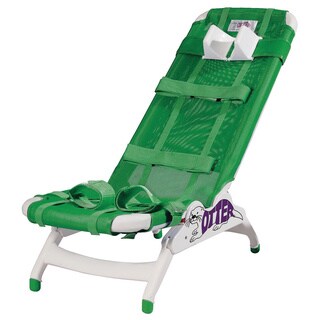Wenzelite offers the best in all products for pediatric rehabilitation. This chair is made of a durable plastic frame and has a fabric that can be easily removed and machine washed for convenience. The seat and back are adjustable to angles of 0, 22.2, 45, 67.5, and 90 degrees to ensure comfort while bathing. This is done by using the unit-bars located on the upper back of the seat and lower back of the seat. The legs are slip-resistant for safety and can raise the chair to a height of 7-inch , even while the user is seated in the chair. The seat has convenient leg straps to control abduction and adduction while seated, and also has adjustable positioning straps for security that can be removed if they are not needed. The chair has height and width adjustable head cushions that provide only the best in support, security, and comfort. They can even be used as lateral supports. When the chair is not in use it can be folded flat for easy and compact storage. The Otter Pediatric Bathing System is available is available in three sizes and with or without a Tub Stand.- Angle-adjustable seat and back have five angle adjustments at 0-degrees, 22.5-degrees, 45-degrees, 67.5-degrees and 90-degrees
