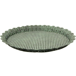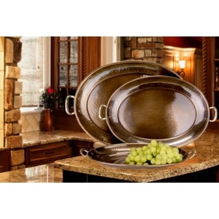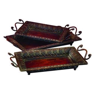 This classic metal tray set features zali work and can be used as decorative pieces or for serving snacks and other items. These conversation pieces are sure to add antique appeal to your home.- Large: 15 inches Long x 25 inches wide x 3 inches high