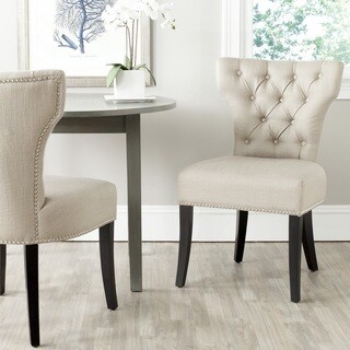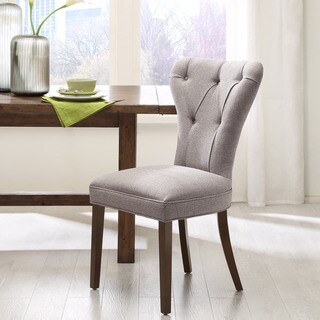 Enjoy this Abbyson Living chair for years to come. This grey dining chair is crafted with linen fabric upholstery with a decorated button design on the back. Finished with solid charcoal birch legs, this is the perfect furniture accent.