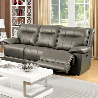 SaleFurniture of America Loffman Grey Bonded Leather Reclining Sofa