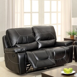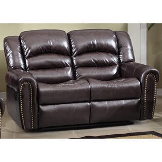 Give your home study character with this reclining loveseat. The burgundy Italian leather has a soft feel and a rich color. The nailhead trim creates a very formal look, while the thick cushions and padded armrests provide plenty of support for your guests to sit comfortably at all times. When you want to hide in your study for a quick catnap, kick up the foot rest and recline in the loveseat and nap peacefully.- Stylish two-tone burgundy color