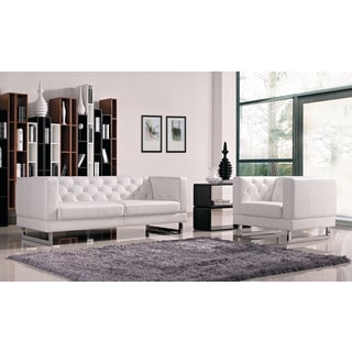 SaleWhitney Modern Ivory Faux Leather Sofa and Loveseat Set