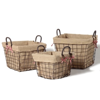 Each basic, circular-style iron frame is lined with newspaper print linen-like material. These attractive and durable baskets are versatile and exceptionally functional.| Caractéristiques | |