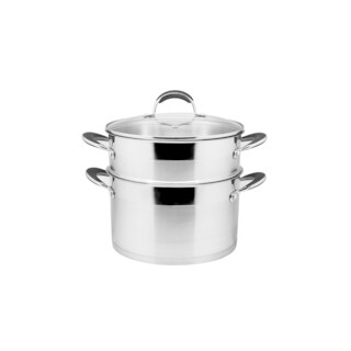 Made of functional and beautiful stainless steel, this 3-quart sauce pot and steamer insert are polished to a mirror finish. The pot features an encapsulated base that spreads heat quickly and evenly. Rolled edges add durability and make it easier to pour from the pot without dripping. The pot comes with a vented glass lid with a handy round knob for trouble-free handling.- Materials: Stainless steel