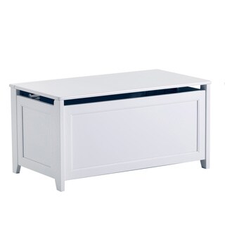 In family rooms, dens and rec rooms, this toy chest is great for storing collectibles, toys, shoes, games, clothes, and more. The two compartments are partially enclosed, with a shelf on top to hold more items. The white finish and decorative design add elegance to the piece, making it a beautiful addition to any space. Easy assembly required. At 18 inches high, the open chest lets your little ones easily see, reach for and put away their favorite toys. The classic Shaker-style frame and panelled front set this chest apart from other children's furniture. Built to last, this is a toy chest that will take your child through their first years and beyond.- Set includes: One (1) toy chest
