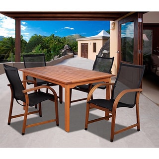 SaleAmazonia Cosmopolitan 5-piece Eucalyptus Wood Rectangular Dining Set with Black Sling Chairs
