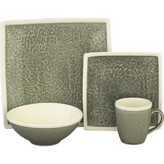 Dazzle guests when you serve your meals on this contemporary Via Roma dinnerware set from American Atelier that is as impressive as your cooking. This uniquely designed 16-piece set serves four on cream, blue and black earthenware bearing an exquisite geometric pattern that perfectly complements the eight square-shaped salad and dinner plates. Dine in elegance and safety knowing that this dinnerware set is free of heavy metals. At meal's end, just pop your bowls, mugs and plates into the dishwasher for easy cleaning. Heating foods on this set is a breeze thanks to the microwave-safe materials.
