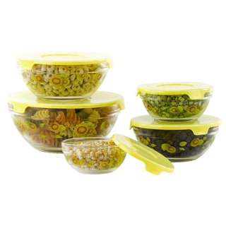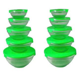 SaleAlpine Cuisine 5-piece Nesting Glass Bowl Set with Green Lids (Pack of 2)