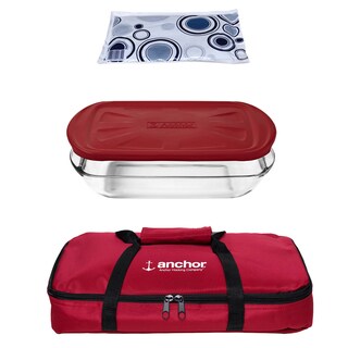 This is an amzing pie plate and cover. It features a very genrous 9.5 in. Deep Pie plate with easy to grip rim. An extra Wide Fluted Edge accents the pie. The unique White Expandable cover expands to safely protect your meringues and domed pies. The lids folds down for easy storing. Another clever invention from America's favorite glass producer, Anchor Hocking. Red cover on this set.| Dimensions | 11.75x11.75x3.75 |