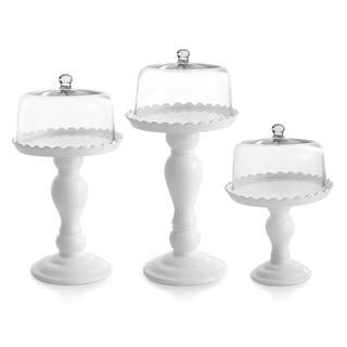 Set includes: One (1) glass cake holder, one (1) glass ribbed dome