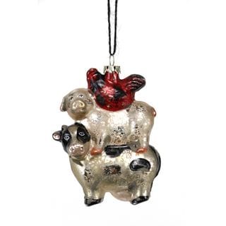 SaleAntique Glass Cow Pig Hen Ornament 4.25-inch