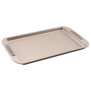 With a larger surface for creating sizeable batches of baked treats, the Anolon Advanced Bronze Nonstick Bakeware 11-inch by 17-inch Cookie Pan with Silicone Grips is designed to make baking easier and more efficient, and measure up to the high standards of serious bakers. Constructed of heavy-duty carbon steel, Anolon Advanced Bronze Bakeware has all the features and benefits of regular Anolon Advanced Bakeware, in a warm hue that coordinates with the Anolon Advanced Bronze Cookware collection. Use the generous cookie pan to create wild strawberry jam-filled thumbprint cookies.- Because the pan features a convenient lip around the outside edge, it's also ideal for roasting Yukon Gold potatoes or a farmer's market vegetable medley.