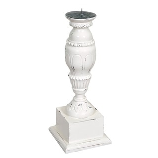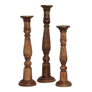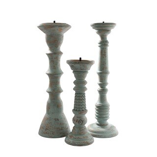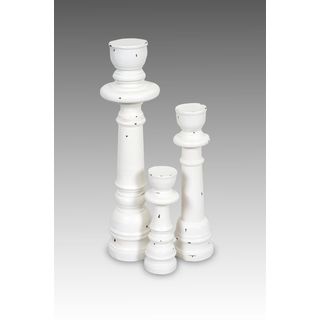 Add beauty to your country-style dining table with these pretty antiqued wooden candle stands. The individual stands are in three different heights for a tiered look, and the detailing and white patina make them look like Grandma's keepsakes. Designed for wide column-style candles, these stands make a stunning central table grouping alone or with fruit or foliage arranged at the base.