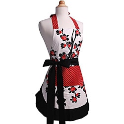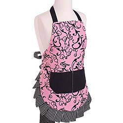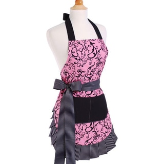 A striking damask print and front patch pocket highlight this beautiful apron from Flirty Aprons. Constructed of 100-percent cotton, this apron features strong stitching and a darling cut.This style is flattering on any body type, due to the cut and strategic ruffle placement. The wide apron strings give this fun, girlish semi-frock an updated and sophisticated edge that looks pleasing from any angle. Try wearing it while playing the stylish dinner party hostess, as this apron will complement not only your personal flair but your entire evening's presentation.
