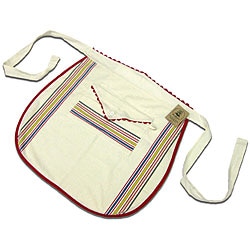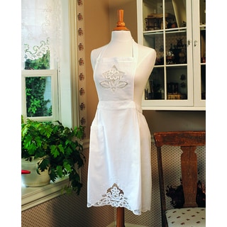Cute I really loved the look of this apron==i wish they made it in a softer material because it rubs against my neck and feels like a burlap sack. I do love the style of the apron...but I am affraid if I wash this apron...the pleats in the skirt will unfold and look ridiculous.