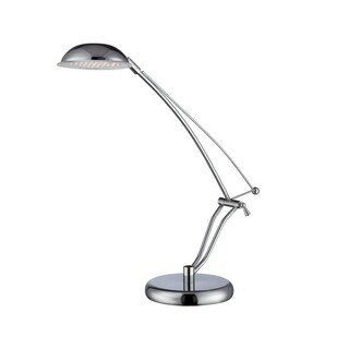 This modern LED lamp is great forthe office or home. The unique base, LED head and pendulum chrome arm make this a truly beautiful and functional lighting design.- Color: Silver