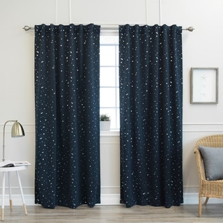 Twinkling Metallic Gold Stars add a playful touch to these functional blackout curtains. Perfect for any room in your home from your bedroom to a nursery. Innovative fabric construction allows for single layer, soft drapable blackout curtains. Help save money by insulating against heat and cold, while reducing the noise level of the outside world.- Laboratory test shows these curtains insulate against heat and cold, saving you money and energy.