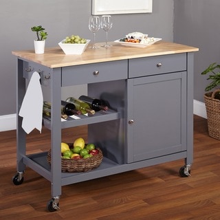 SaleSimple Living Columbus Grey Kitchen Cart with Wood Top
