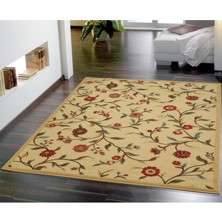 SaleOttomanson Beige Floral Garden Design Non-skid Area Rug (5'0 x 6'6)