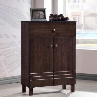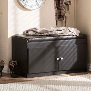 SaleBaxton Studio Margaret Contemporary Dark Brown Wood 2-door Shoe Cabinet with Faux Leather Bench