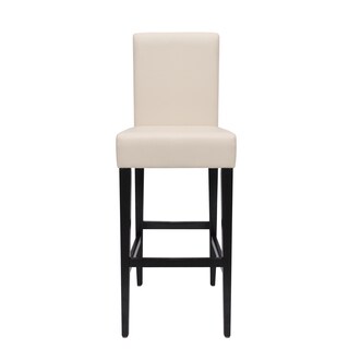 Unwind in style with these cream bar stools from Baxton Studio. The stools are made with faux leather; which looks and feels similar to genuine leather, yet is more affordable. The dense polyurethane foam fill on the seats and backs provides extra comfort and support, and the stools' wooden frames make them strong, sturdy and durable.The stools' black legs complement the cream upholstery, creating a vibrant, traditional look, and the silver nail head trim adds style and class to the overall look. Wipe the seats with a mixture of mild detergent and water, to clean them.