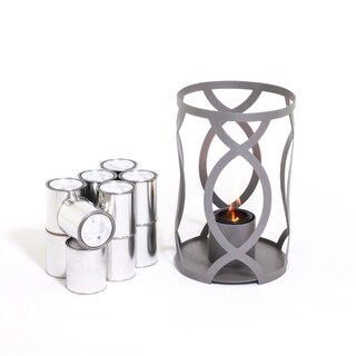 SaleTF Essentials Savannah Gray Outdoor Steel Lantern/Gel Fuel Set
