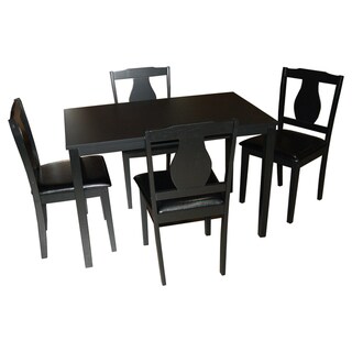 Add a stylish touch to your kitchen with this five-piece dining set. A black finish highlights this table and set of four, upholstered chairs.