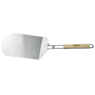 This Wood Handle Aluminum Pizza Peel measures 27.75 inches in length and 14 inches in width. The convenient, easy-to-hold wood handle protects your hands from heat.The thin edge of this Blackstone pizza peel slips easily under a thin-crust pizza, thick hand-tossed pie or scrumptious wood-fired flatbread to help you quickly transfer your culinary creation from the oven to the table without any tearing or squishing. The extended handle keeps your hands well away from the heat, and the handle is riveted on for extra stability when you're carrying a fully-loaded pizza.
