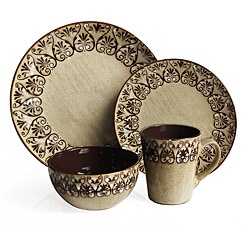 Set includes: Four (4) dinner plates, Four (4) salad plates, Four (4) cereal bowls, Four (4) mugs