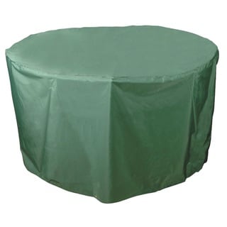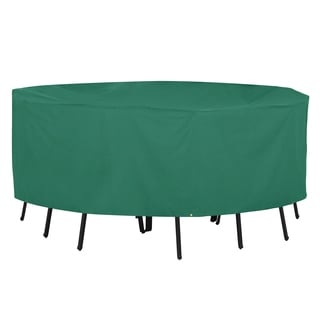 Keep your patio furniture clean and dry. This Deluxe 84-inch round cafe patio set cover is made of woven polyester fabric from dyed thread, instead of the more commonality used coated thread, to keep your cover fade resistant. This cover is treated with an environmentally friendly non-PVC coating on the underside to keep the fabric 100-percent waterproof and the seam construction has also been improved with higher quality thread and tighter stitching density; upper seams are double sewn with waterproof tape. It is also treated with the Bostech surface treatment; a unique formula that repels water on the cover surface and also includes an UV inhibitor for long lasting durability and it has solid brass eyelets and durable tie and cord locks for fastening to keep the cover secure in windy conditions. Resistant to mold, mildew and rot plus it will not crack in the winter and is resistant to high temperatures in the summer- Dimensions: . 84 inches diameter x 45 inches high