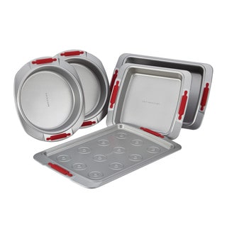 SaleRachael Ray Cucina Nonstick Bakeware 10-Piece Set, Latte Brown with Cranberry Red Handle Grips