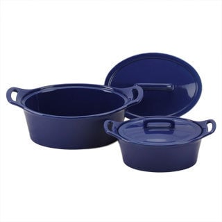 SaleOmniWare Blue Oval Casserole Dish with Lid (Set of 2)