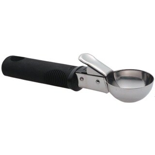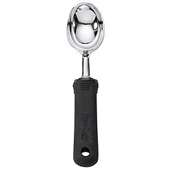 - The stainless steel ice cream scoop features comfortable rubberized pads on the handles and a stylish Cake Boss logo.