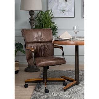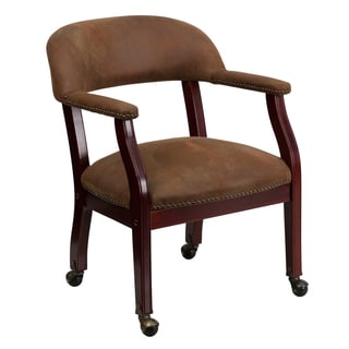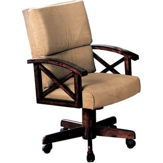 Extend the life of your furniture and floors with this casual brown caster chair. Casters keep your wood floors scratch-free even if you're moving the chair from room to room. Soft microfiber upholstery makes this chair easy to clean with gentle cleaning solutions. Its color stays bright and free of stains for years. The sturdy metal and wood frame holds up to 300 pounds.Switch between different work stations quickly on this rolling chair. Work on bigger projects from home by spreading out lots of paperwork and monitors and moving freely between them on this comfortable roller chair.