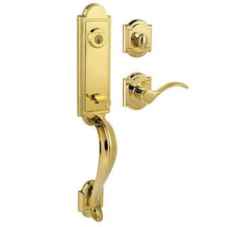 SaleSchlage Camelot Bright Brass Dummy Handleset with Accent Interior Lever