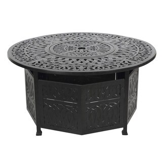 Enjoy the outdoors with the Gatsby fire pit. Constructed with a cast aluminum frame, this fire pit is elegantly designed with decorative frame finish. The shield offers ample protection to enjoy chats fireside with your guests and is removable for those beloved smore nights. Adding this piece will bring warmth and elegance to your backyard or patio area, for those summer and winter nights.