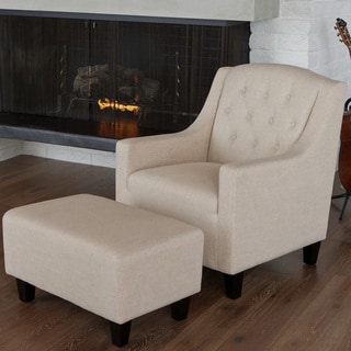 SaleChristopher Knight Home Elaine Beige Tufted Fabric Club Chair with Ottoman