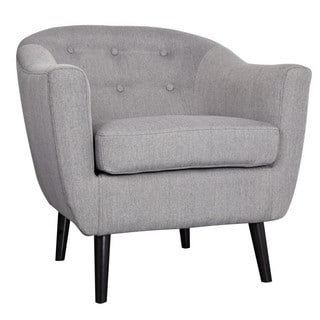 Janet Light Grey Fabric Accent Chair adds a lively flare to any room while still maintaining its neutral colors. Fully padded and comfortable for hours of unidirectional sitting.- Material: Fabric