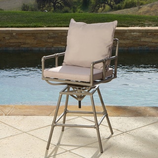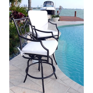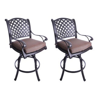SaleGatherCraft Casa Grande Bronze Outdoor Cast Aluminum Cushioned Swivel Barstool (Set of 2)