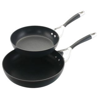 Two is always better than one when it comes to the essential Circulon Genesis Hard-Anodized Nonstick 9-1/4-inch and 10-3/4-inch French Skillets. These skillets feature heavy-duty, hard-anodized aluminum construction that provides fast, even heating and outstanding performance day after day. Their long-lasting nonstick cooking surface not only resists scratching, staining and chipping, but also delivers extraordinary food release for dependable cooking results without added fats and oils. Cook a spinach and mushroom scramble in one and Canadian bacon in the other for a healthy brunch. Saute Vidalia onions and green peppers in one skillet and cook chicken breasts in the other for family-night fajitas. The unique TOTAL Food Release System combines superior nonstick with raised circles to reduce abrasion from utensils. Stainless steel handles are solidly double riveted for strength, and the pan is oven safe to 500°F. With superior-quality nonstick that offers lighter cooking and faster cleanup, the skillets work beautifully with other pieces from the Circulon Genesis line of cookware.- Construction: Hard Anodized Aluminum