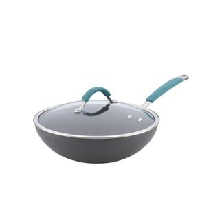 SaleRachael Ray Cucina Hard-anodized Nonstick 11-inch Grey with Agave Blue Handle Covered Stir Fry