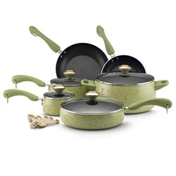 SalePaula Deen Collection Porcelain Nonstick 15-piece Set, Green Speckle with $20 Mail-in Rebate