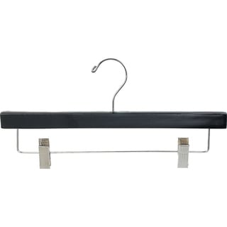 These strong heavy-duty plastic hangers feature a space-saving flat body, polished chrome swivel hook, and a set of polished chrome clips with clear anti-stain cushions for hanging pants, skirts or strapless garments.| Caractéristiques | |