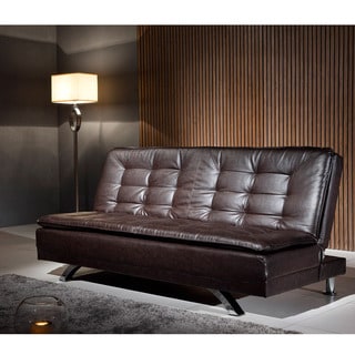 SaleCorvus Espresso Leather-look Sofa with Stainless Steel Legs