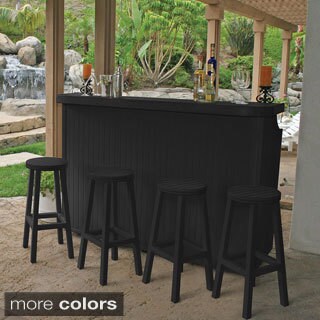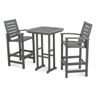 Give your patio a refreshing summery touch with this outdoor bar set. The table and chairs are constructed with heavy-duty aluminum frames and poly wood, offering the durability you look for in outdoor furniture. Each chair comes with a fabric cushion for added comfort, making this set a wonderful option for entertaining guests.