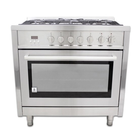 Let this hot new dual fuel range help you create meals like a professional chef. For those with discriminating tastes, this 8-function 3.8 cubic foot oven has the space to get it all done and the power to get it done fast. This freestanding/slide-in dual fuel range features 5 gas burners which allow you to cook from a high heat for boiling, frying or searing to a low simmer for the most delicate sauces. The removable backsplash gives it the versatility to be used as a freestanding or slide-in range. With its classic stainless steel body and modern black finishes this freestanding gas range is designed to perform as well as it looks. The electric oven features a dual set of convection fans which help distribute heat evenly around the food, removing the blanket of cool air that surrounds food in an oven, allowing food to cook more evenly in less time and at a lower temperature than in a conventional oven.- Burner Input Ratings: