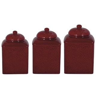 Maximize your kitchen space with the versatile beauty and durability of the Country French canister set. They put color on your counter while keeping contents fresh. Hand-painted, glazed ceramic canisters seal tight with neoprene gaskets.