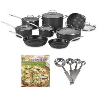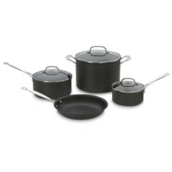 Cuisinart offers customers an unbelievable value with new 14 and 17-piece cookware sets. Configurations include all essential pieces, plus extra items every consumer will appreciate. Cuisinart?s Hard Anodized construction provides quick and even heating to eliminate hot spots. The durable Quantanium non-stick cooking surface, reinforced with titanium for lasting food release, is perfect for low-fat diets.- Hard Anodized Construction