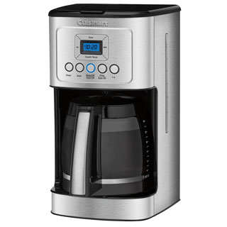 Serve up the perfect cup of coffee with Cuisinart's programmable coffeemaker with a hot water system. A fully automatic 24-hour programmable option makes it easier than ever before to simplify your morning routine. Self-cleaning features and a removable drip tray make maintenance a breeze.The sleek, modern design combines style and functionality. The 12-cup carafe features a drip-free pour spout and easy-grip handle for serving. The programmable backlit LCD with digital clock offers a high-tech solution to the art of brewing. Its attractive black and white color scheme makes it the perfect addition to the modern kitchen.
